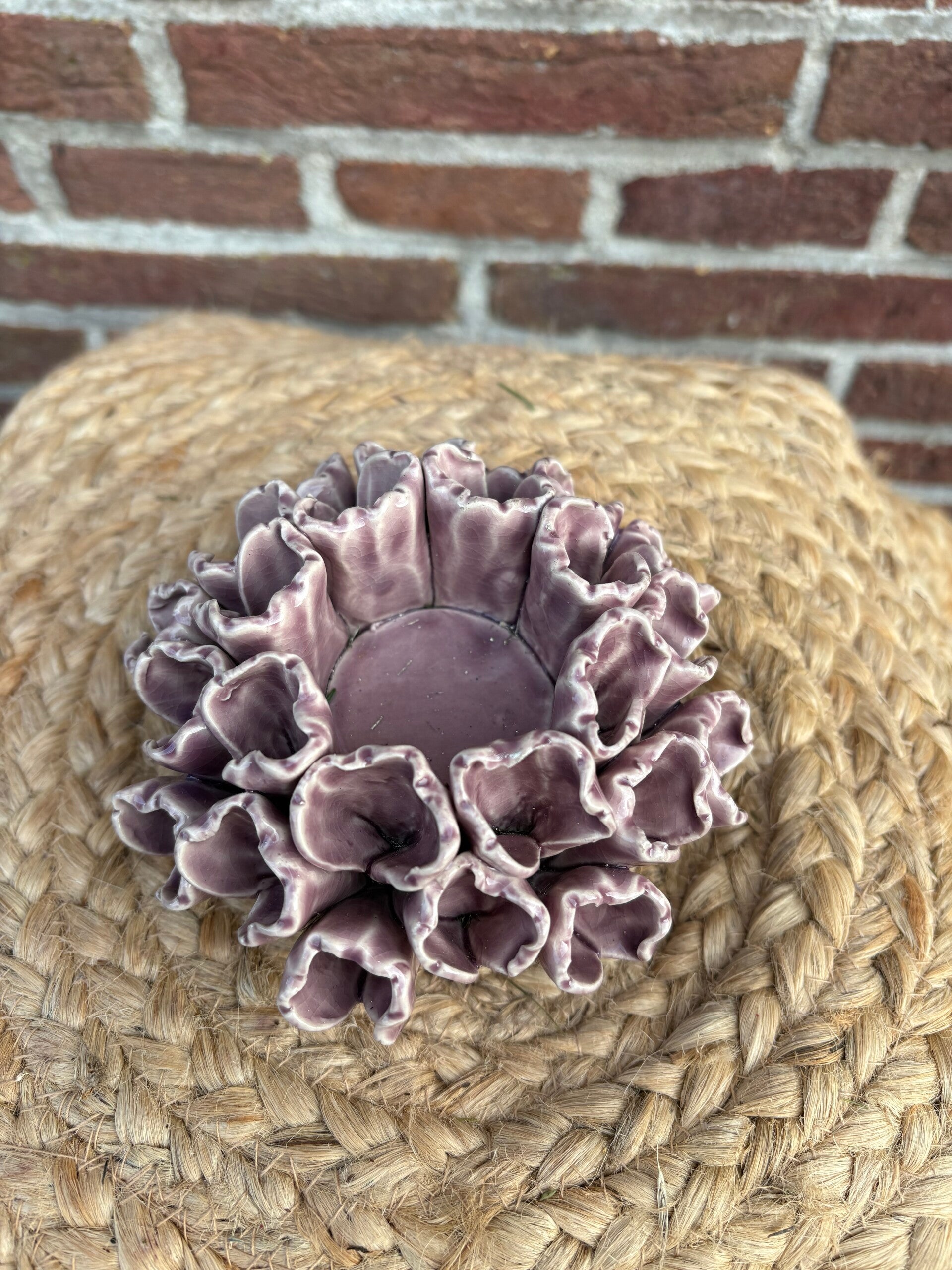 Waxinehouder aardewerk in de vorm van een bloem in het lila/paars