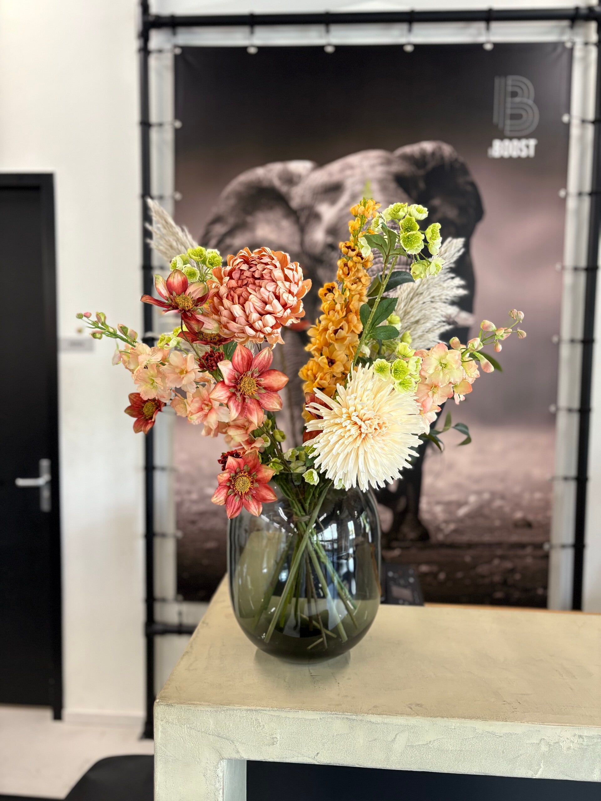 - Vervolgens gaan we de bloemen inkopen en worden deze met de hand uitgevouwen in het atelier in Houten om vervolgens deze te schikken tot een boeket of wordt de pot voor de plant aangevuld.
